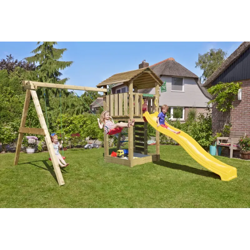 Produkt id: legetårn-komplet-jungle-gym-cottage-inkl-swing-modul-gul-rutschebane 5705858722122