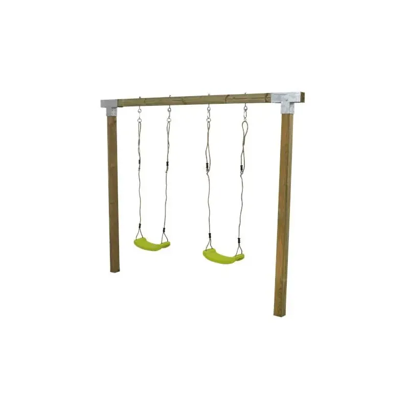 Trykimprægneret fyrgran Stolper omlimede 9x9cm – længde 297cm til nedgravning Overligger omlimede 9x9x268cm Mål: BXLXH 9x268x209cm Leveres inkl. karabinophæng Saml selv Leveres inkl. 1 lime gyngesæder
