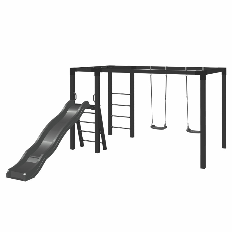 Plus Daylife gyngestativ – model 3 – 179088-15 Skab de bedste rammer i haven med et gyngestativ, som inviterer til bevægelse og giver dine børn mulighed for at udfolde sig aktivt. Det moderne gyngestativ med ribbe, armgang, rutsjebane med stige og to