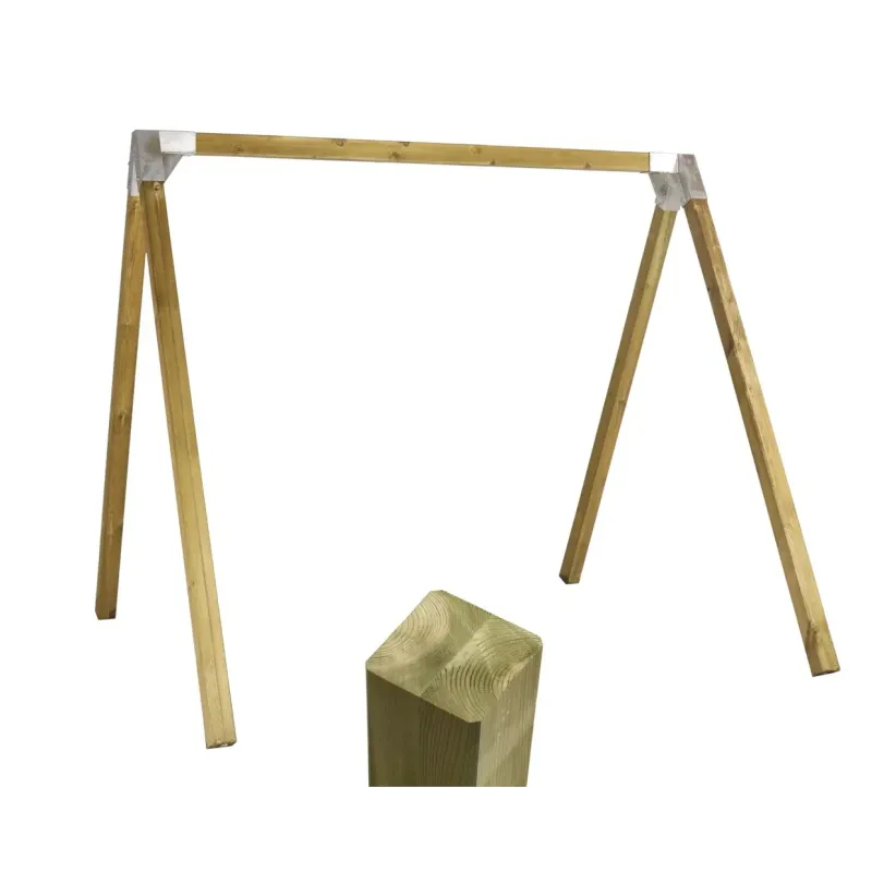 Plus Gyngestativ ekskl. gynger og karabinhager – natur 18519-1 Trykimprægneret fyrgran i natur Stolper: 90x90mmx238cm – omlimet Overligger: 90x90mmx268cm – omlimet Stolper og overligger samles med beslag i varmgalvaniseret stål Leveres inkl. jordanker C